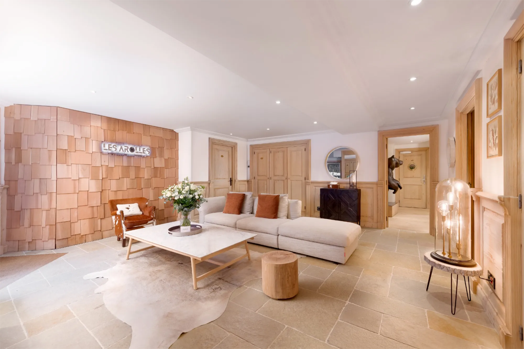 Le chalet Les Arolles est une invitation à la poésie et au partage. Son atmosphère, à la fois traditionnelle et raffinée, est sublimée par des œuvres d’art dont celles de Michel Bassompierre : deux ours en bronze et en taille réelle qui incarnent en toute bienveillance l’âme féérique de la montagne.